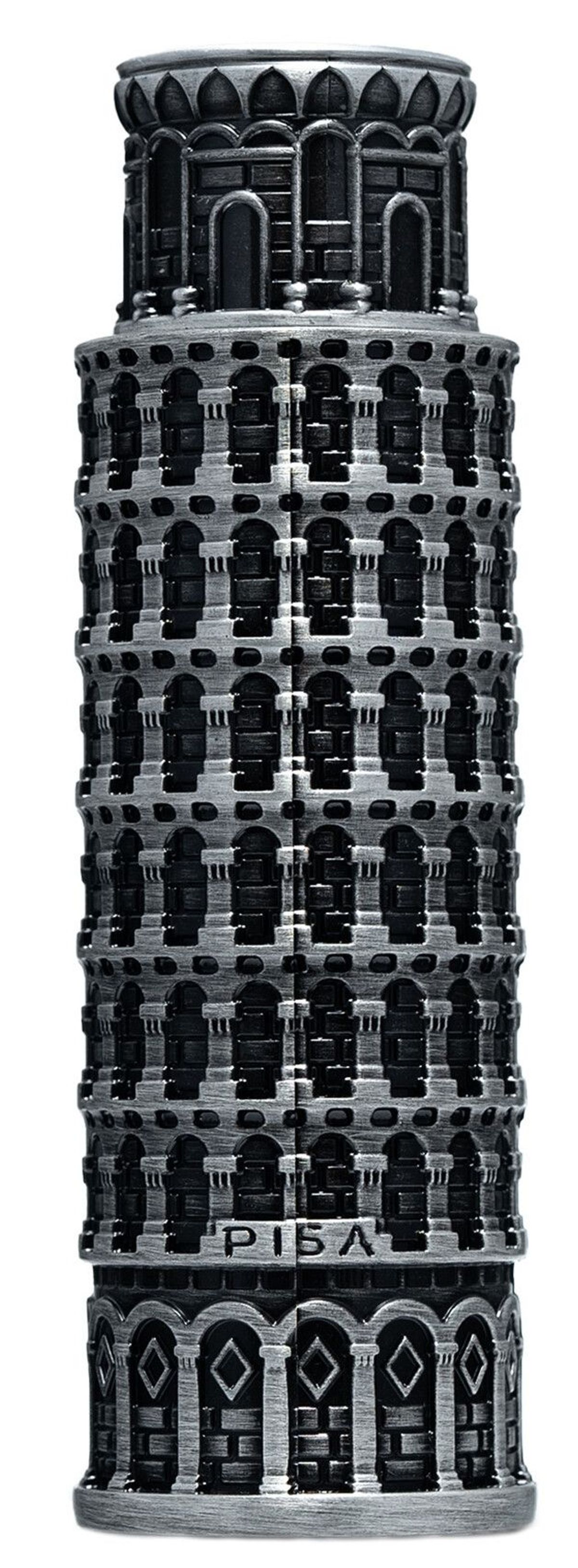 Chai nước hoa Pisa là một sự tôn vinh điêu khắc cho hình bóng kiến trúc của thành phố, với hình dạng thủy tinh thanh lịch, kéo dài, thuôn dần về phía chân đế. Chất liệu là pha lê trong suốt, độ trong cao, khúc xạ ánh sáng, gợi nhớ đến làn nước lấp lánh của sông Arno. Nắp màu than chì, mờ, tạo ra sự tương phản tinh tế, gợi nhớ đến đá của nhà thờ Pisa. Thẩm mỹ tổng thể kín đáo nhưng tinh tế, phản ánh sự kết hợp của hương cam chanh tươi sáng và các sắc thái gỗ sâu của nước hoa.