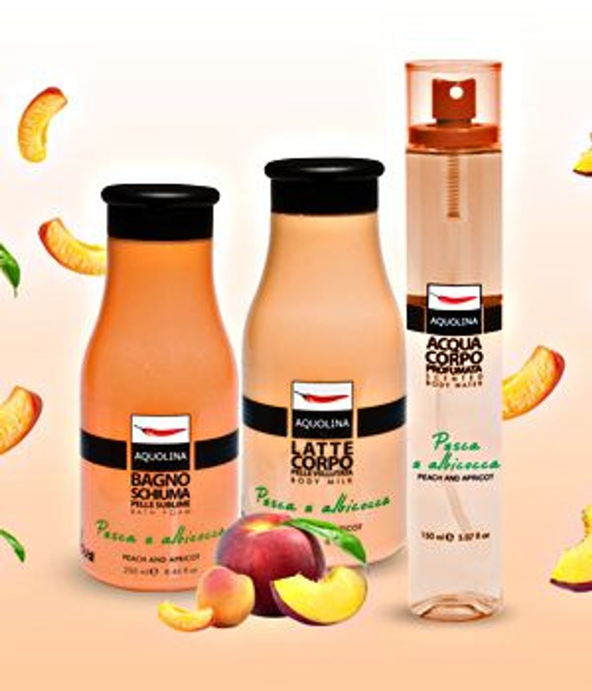 Nước hoa nữ Pesca e Albicocca được cho ra mắt vào năm 2015. Đây là dòng nước hoa Aquolina có hợp hương chính là Hương trái cây và Hương phấn.